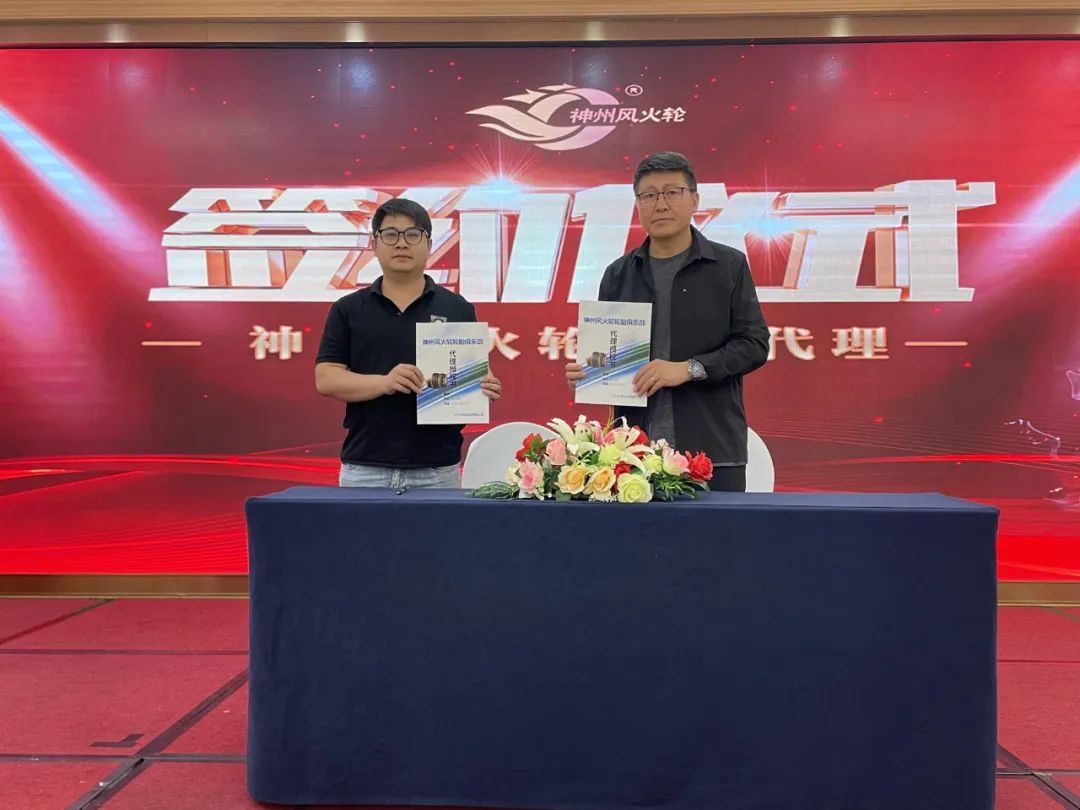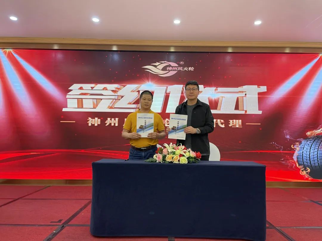 神州風(fēng)火輪為全國意向代理商提供了一次財(cái)富機(jī)遇,同時(shí)也進(jìn)一步布局全國市場。清晰的市場定位,深遠(yuǎn)的品牌影響力,加之完善的加盟商機(jī)與全方位的政策支持,讓現(xiàn)場熱血沸騰,爭相簽約。遼寧神州風(fēng)火輪輪胎科技有限公司戰(zhàn)略顧問崔邵焜先生代表公司與意向代理商進(jìn)行簽約儀式,本次招商會(huì)共有4位高瞻遠(yuǎn)矚的意向代理商完成簽約,成功鎖定4城。獨(dú)行快,眾行遠(yuǎn)。神州風(fēng)火輪將與代理商在合作的道路上并肩前行,追求進(jìn)步,為代理商的發(fā)展壯大持續(xù)不斷地注入能量。