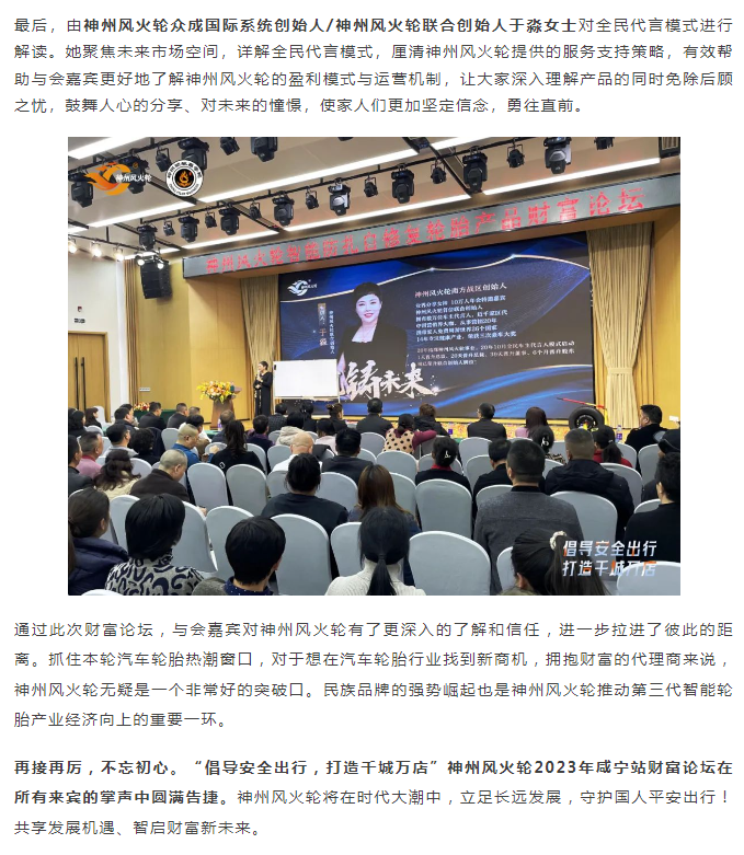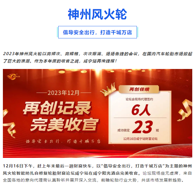 【咸寧站】“倡導(dǎo)安全出行,打造千城萬店”神州風(fēng)火輪智能防扎自修復(fù)輪胎財(cái)富論壇